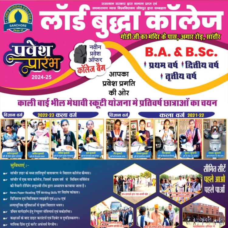 🙏 स्वागतम 🙏 लॉर्ड बुद्धा कॉलेज सांचोर गोड़ीजी मंदिर के पास अगार रोड़ सांचोर BA, [सभी विषय] BSc (सभी विषय CBZ,PCM) कॉलेज का समय सुबह 10 :00 बजे से शाम को 5:00 बजे तक। आप अपना प्रवेश सुनिश्चित करे। कम फीस और आसान किस्तों में। ------------------------------------------- 💢💢 लॉर्ड बुद्धा कॉलेज सांचोर गोड़ीजी मंदिर के पास अगार रोड़ सांचोर 💢💢